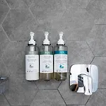 يحتوي التصميم على التلفزيون بشاشة مسطحة ويتميز بمنطقة الجلوس. علاوة على ذلك، هناك مجفف الشعر وملاءات الحمام والمناشف أيضًا.